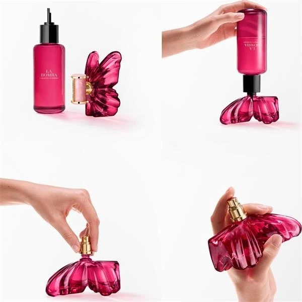 Designul parfumului este spectaculos, inspirat de forma unui fluture – simbol al libertatii si transformarii – reflectand perfect spiritul indraznet al colectiei.