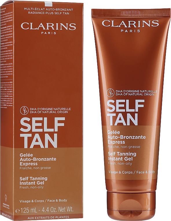 Clarins Self Tanning Tinted Gel este un gel autobronzant delicat, care oferă pielii un bronz natural, uniform și radiant, fără expunere la soare. Formula sa ușoară se absoarbe rapid și hidratează pielea, lăsând-o catifelată și vizibil bronzată.