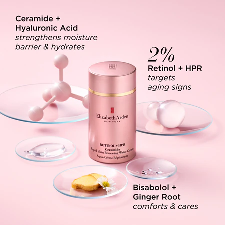 Elizabeth Arden Retinol & HPR Ceramide Skin Renewing Water este o cremă inovatoare de regenerare a pielii, formulată cu retinol, HPR și ceramide, concepută pentru a îmbunătăți textura, fermitatea și luminozitatea tenului. Această cremă ajută la reînnoirea celulelor pielii, reducerea liniilor fine și hidratarea în profunzime, lăsând pielea mai netedă, uniformă și revitalizată.