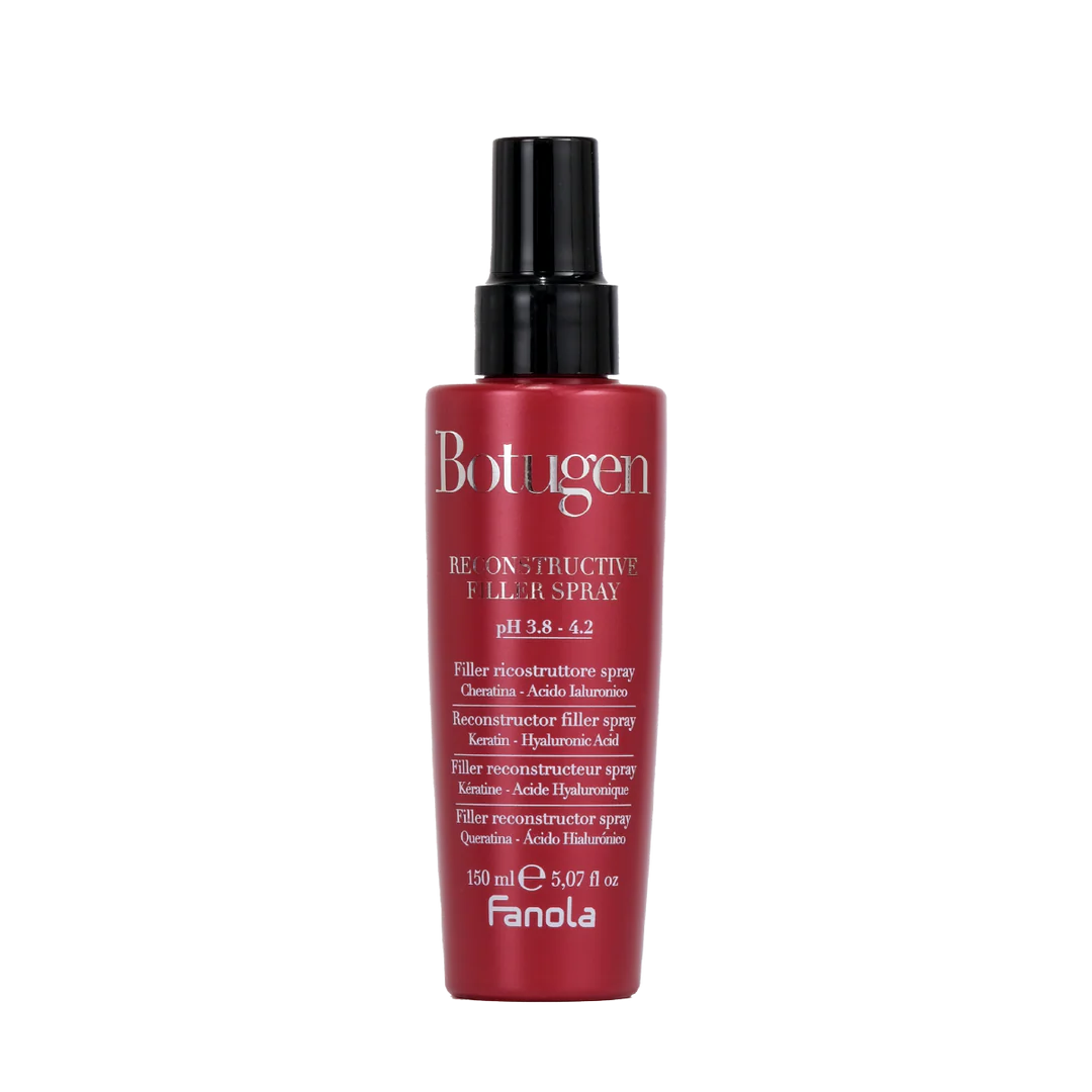 Fanola Botugen Reconstructive Filler Spray este un tratament leave-in profesional, special conceput pentru a repara și întări părul deteriorat sau fragil. Formulat cu tehnologia Botolife și ingrediente active precum keratina și acidul hialuronic, acest spray penetrează adânc fibra capilară, restabilind structura interioară a părului. Rezultatul este un păr revitalizat, cu volum, strălucire și o senzație de catifelare.