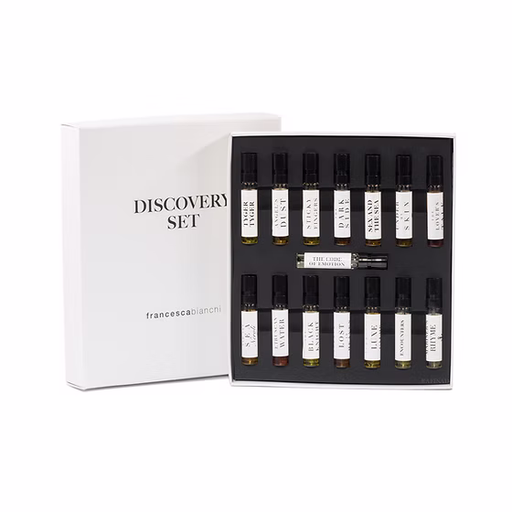 Un univers olfactiv intens, artistic și provocator, adunat într-un set-călătorie ce poartă semnătura inconfundabilă a creatoarei Francesca Bianchi. Acest Discovery Set este o invitație la explorare senzorială, un jurnal parfumat ce se deschide în 15 capitole, fiecare cu o poveste unică, emoție distinctă și profunzime memorabilă.