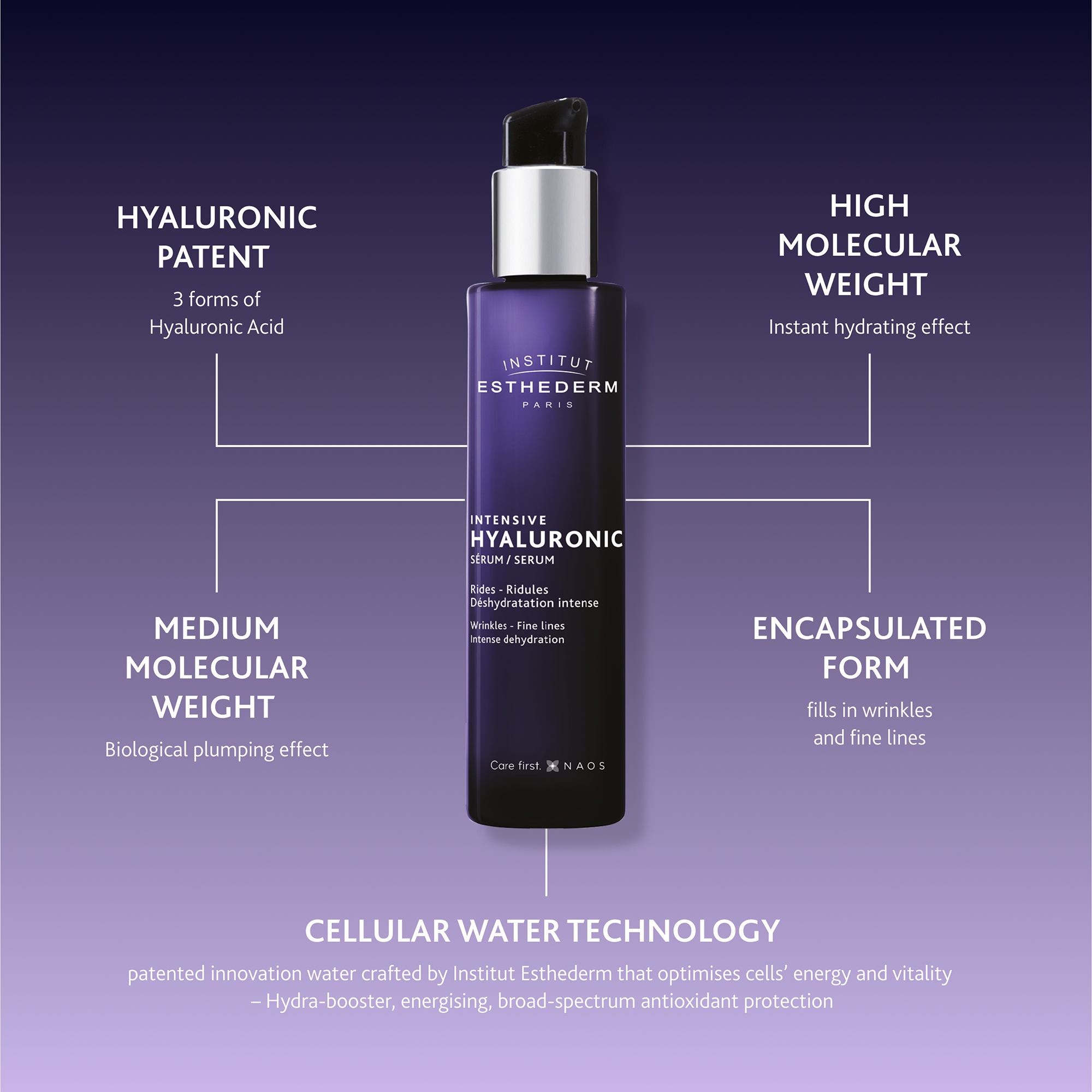 Hidratează intens și netezește pielea cu Institut Esthederm Intensive Hyaluronic Serum, un ser concentrat cu acid hialuronic, creat pentru a oferi tenului fermitate, elasticitate și un aspect radiant. Ideal pentru femeile care doresc hidratare profundă și reducerea vizibilă a liniilor fine.