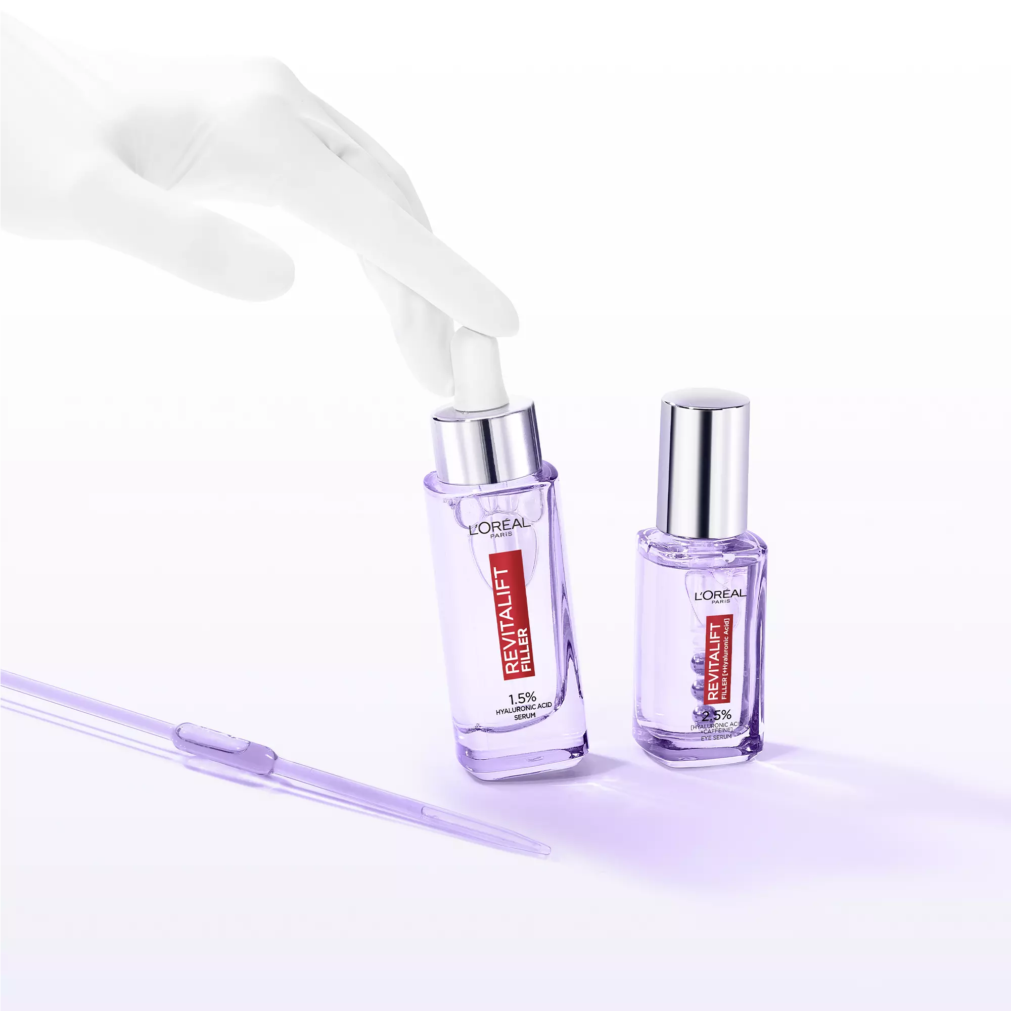 • Ser pentru ochi cu 2,5% acid hialuronic Revitalift Filler (Eye Serum) 20 ml – reduce liniile fine și cearcănele, conferind un aspect odihnit și luminos zonei ochilor.