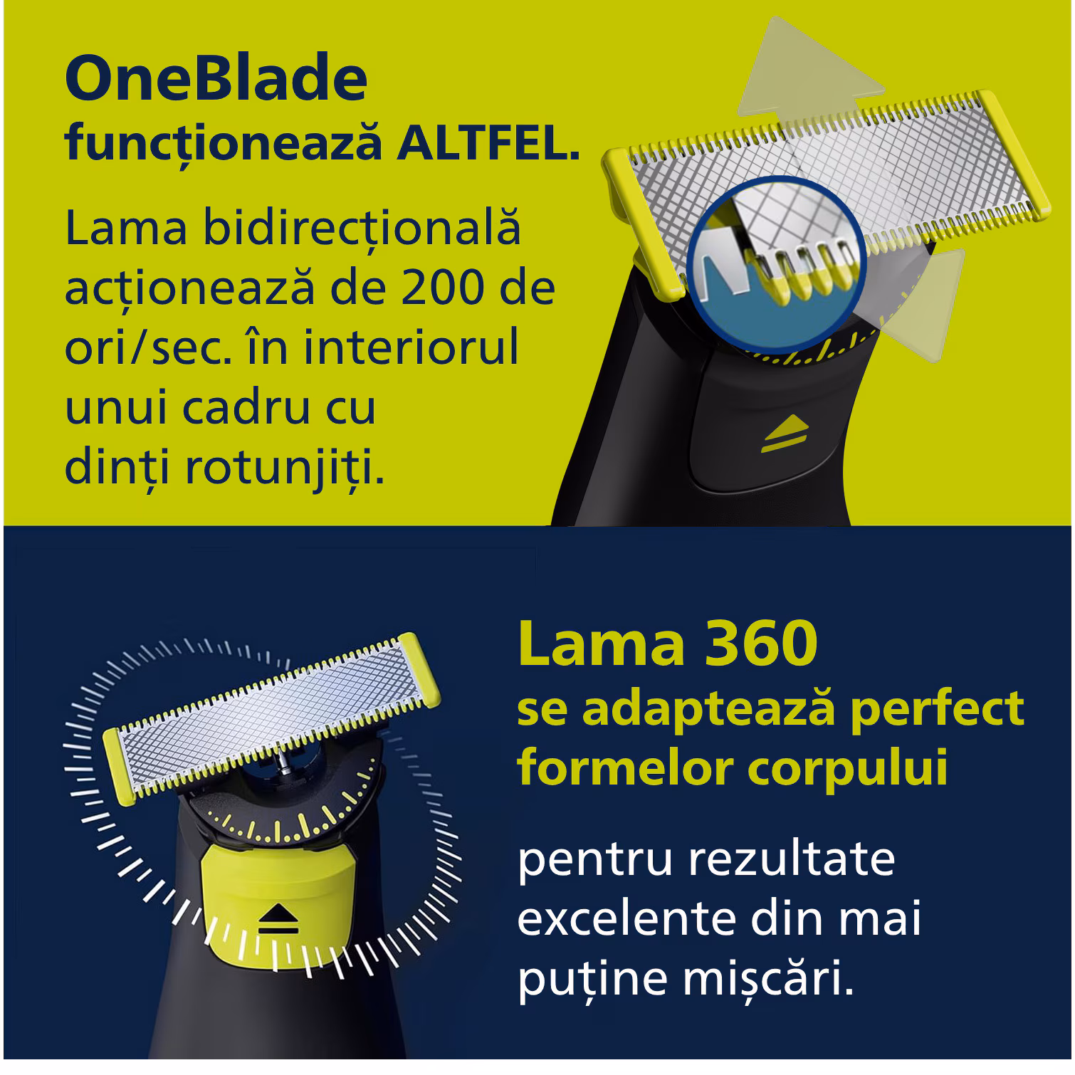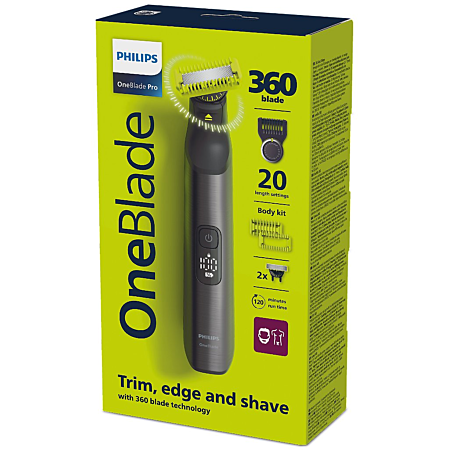 Philips OneBlade Pro 360 QP6552/15 – aparat hibrid Face + Body (pentru față și corp), un dispozitiv versatil de îngrijire personală pentru tuns, conturat și ras.