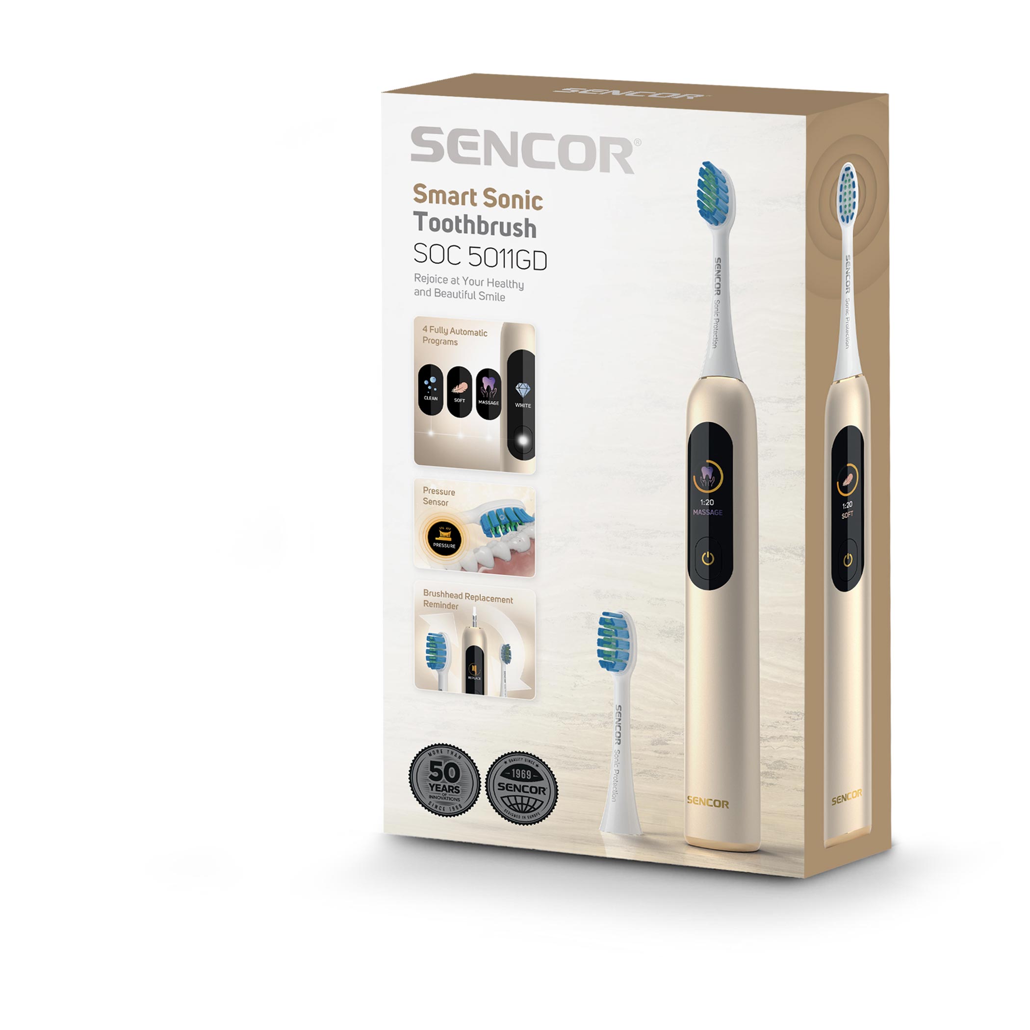 Smart Sonic Toothbrush | SOC 5011GD este o periuță de dinți sonică de ultimă generație, concepută pentru o curățare profundă și delicată a dinților și gingiilor. Tehnologia sonică avansată generează până la 40.000 de mișcări pe minut, îndepărtând eficient placa bacteriană și oferind un zâmbet mai curat și mai sănătos.