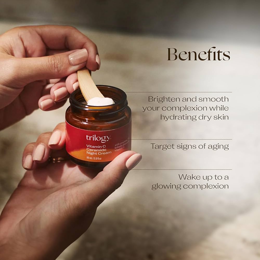 Trilogy Vitamin C Ceramide Night Cream este o cremă de noapte bogată, dar ușoară, special formulată pentru a revitaliza, hidrata și regenera pielea în timpul somnului. Combinând Vitamina C stabilizată, ceramide naturale și acid hialuronic, această cremă ajută la refacerea barierei de protecție a pielii, la uniformizarea tonului și la redarea luminozității naturale.
